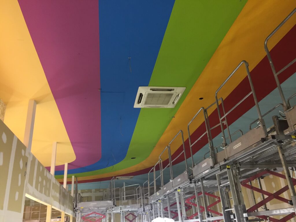 天井に虹色をぬりました。