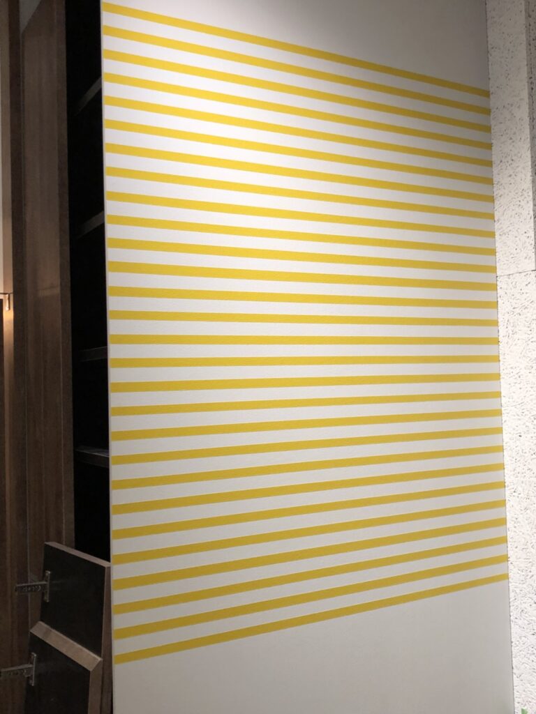 日々 イエローストライプ塗装 2018.06.29 壁面プラスターボード全体に白塗装 養生してイエローをストライプで塗装しました。壁1面だけ塗るだけでセンス良く感じます。 最初は真っ白 マスキングテープをピィーッと真っ直ぐ貼る その上から塗装 イエローストライプ 完成! 渋谷区鉄骨階段 前の記事 見本作成 次の記事
